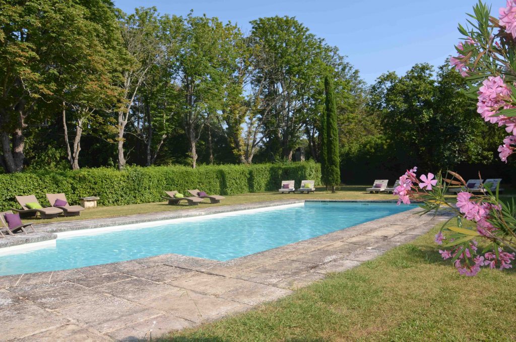 La piscine de 15 X 7 m est commune aux diférents logements, elle est chauffée en demie saison (25 à 28 °C) son espace intime et ses abords sont une tentation au repos et à la détente.